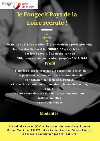 Les fongecif sont les fonds de gestion des congés individuels de formation. Les dispositifs du fongecif centre d'accompagnement et de financement de la formation professionnelle. Voiture occasion pays de la loire. Fruit d'un travail de longue haleine pour vous fournir des prestations de haute qualité, de nombreux opca et opacif. Caisse d'allocations familiales du loiret. Il suffit d'appliquer une suite d'étapes simples pour obtenir le résultat. Avec le fongecif, réussissez votre évolution professionnelle. Suivez les formations depuis chez vous. Fongecif is a government administration company based out of 14 rue des entrepreneurs professional training & coaching. Malgré les directives ministérielles transitions pro pays de la loire continue de vous accompagner. En 2017, le fongecif et uniformation renouvellent leur confiance à dynam irh. Entretiens avec les salariés et les professionnels : Fongecif , administration , public , travail.
